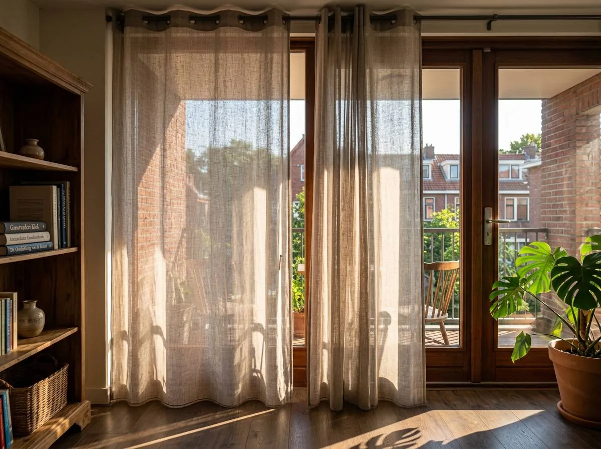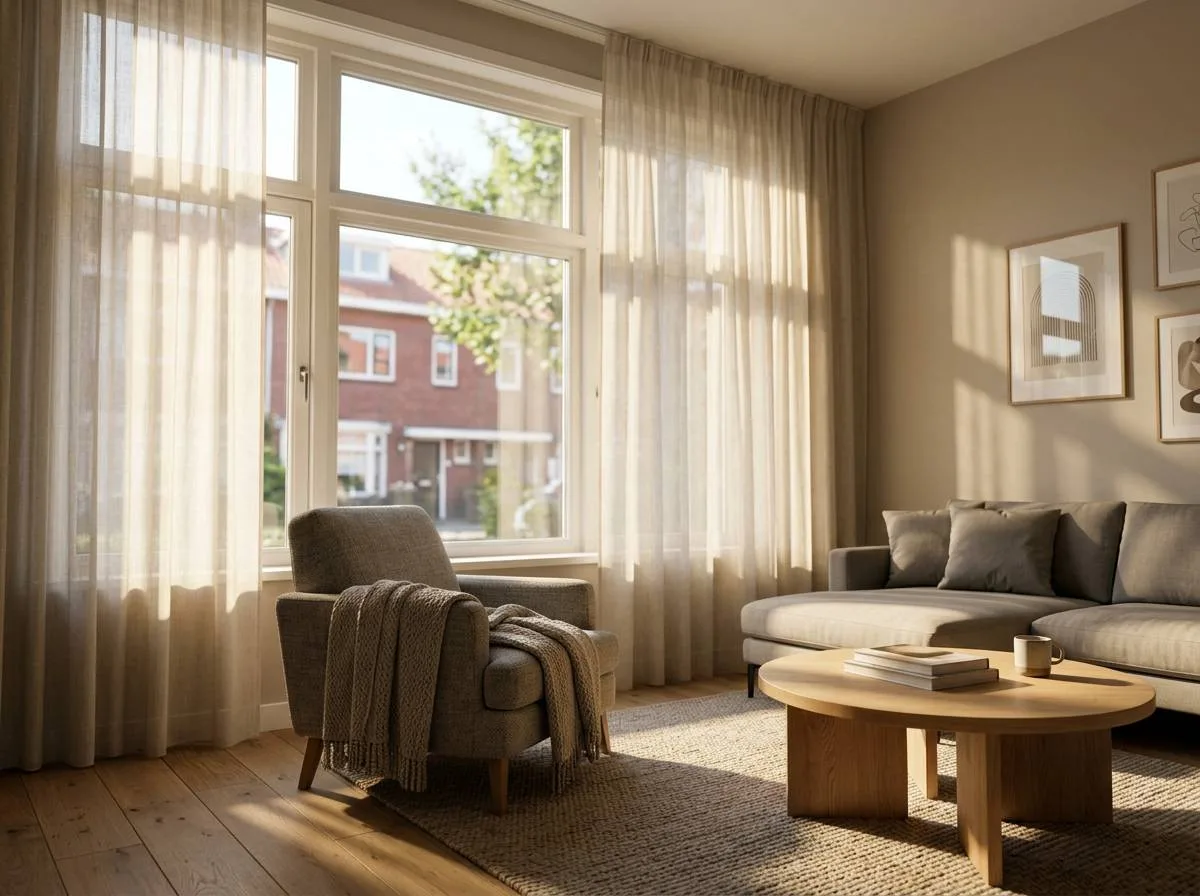 Het grootste voordeel van inbetween gordijnen is de combinatie van licht en privacy. Ze zorgen voor een zachte lichtinval in de ruimte en geven een warme, sfeervolle uitstraling, terwijl je minder last hebt van inkijk van buitenaf.