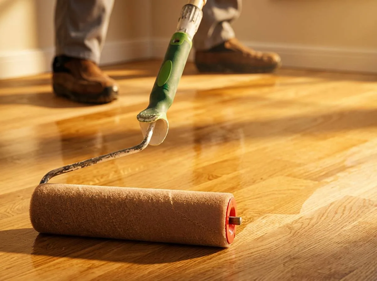 Na het schuren wordt de vloer meestal afgewerkt met olie of lak. Dit zorgt voor bescherming tegen vuil en vocht รฉn bepaalt de uitstraling van de vloer, zoals mat, glanzend of in een andere kleur.